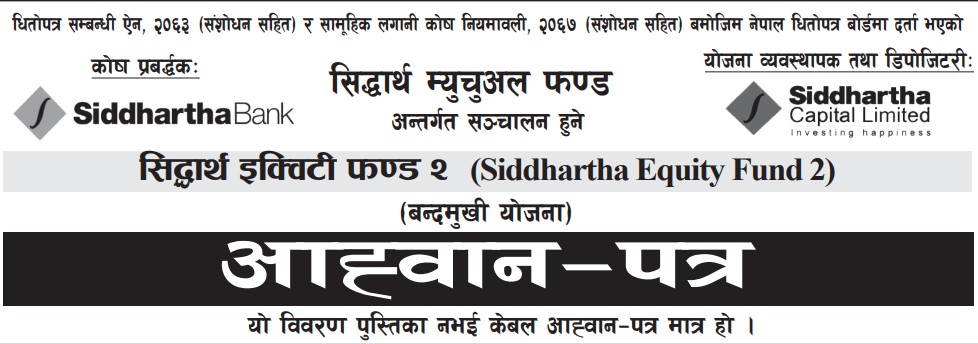 Siddhartha Equity Fund (SEF) is a close-ended equity scheme with a fund size of NPR. 1.5 billion with a maturity period of 10 years. The scheme was listed on 23rd Kartik 2074 and will mature on 22nd Kartik 2084. The objective of the fund is to generate returns by investing in a mix of securities comprising of equity, equity related instruments & fixed income instruments as allowed by prevailing rules/regulations on mutual funds.